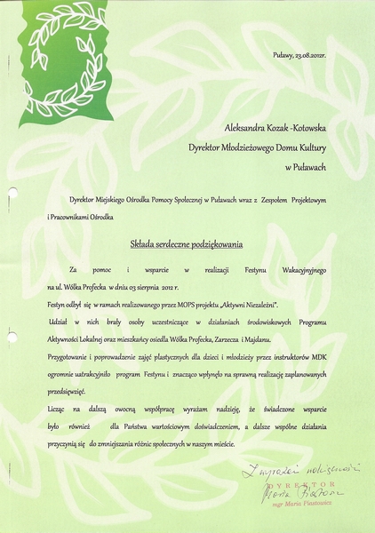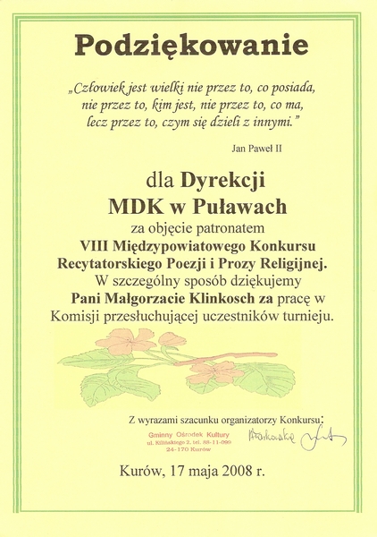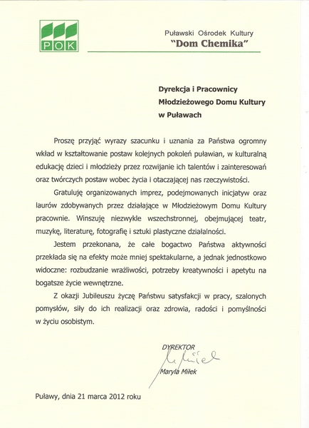 UWAGA !!! GRATULACJE Z OKAZJI 60-LECIA MDK-PUŁAWY