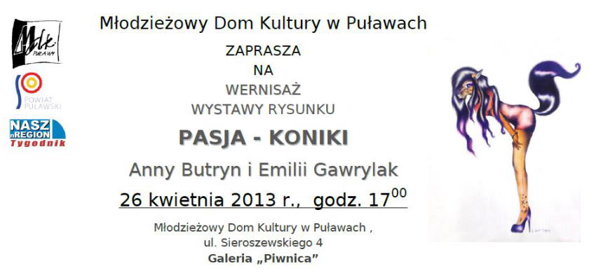w "Galerii w Piwnicy" MDK-Puławy. Wystawa otwarta do 29 marca 2013 r. Wstęp wolny.